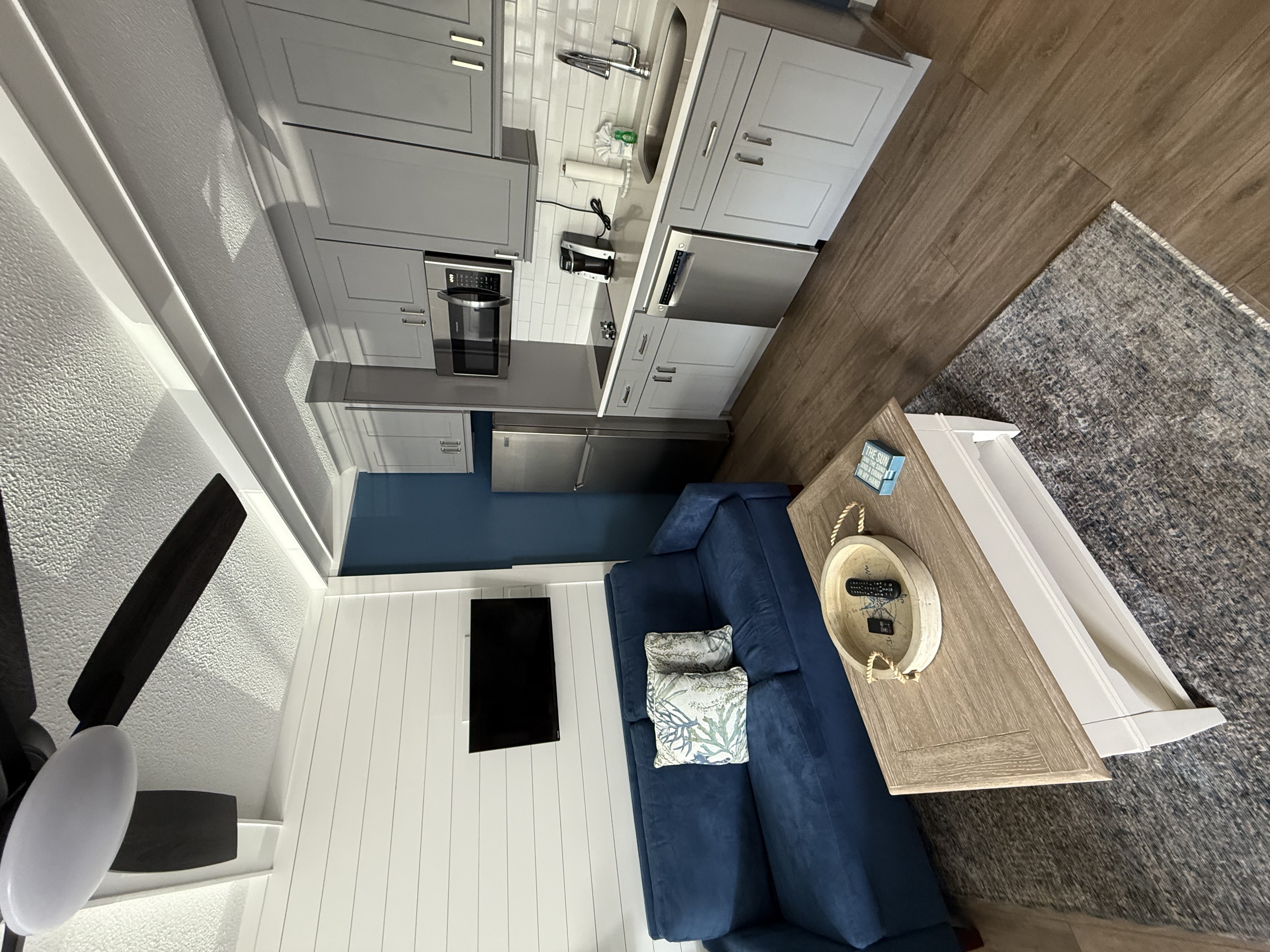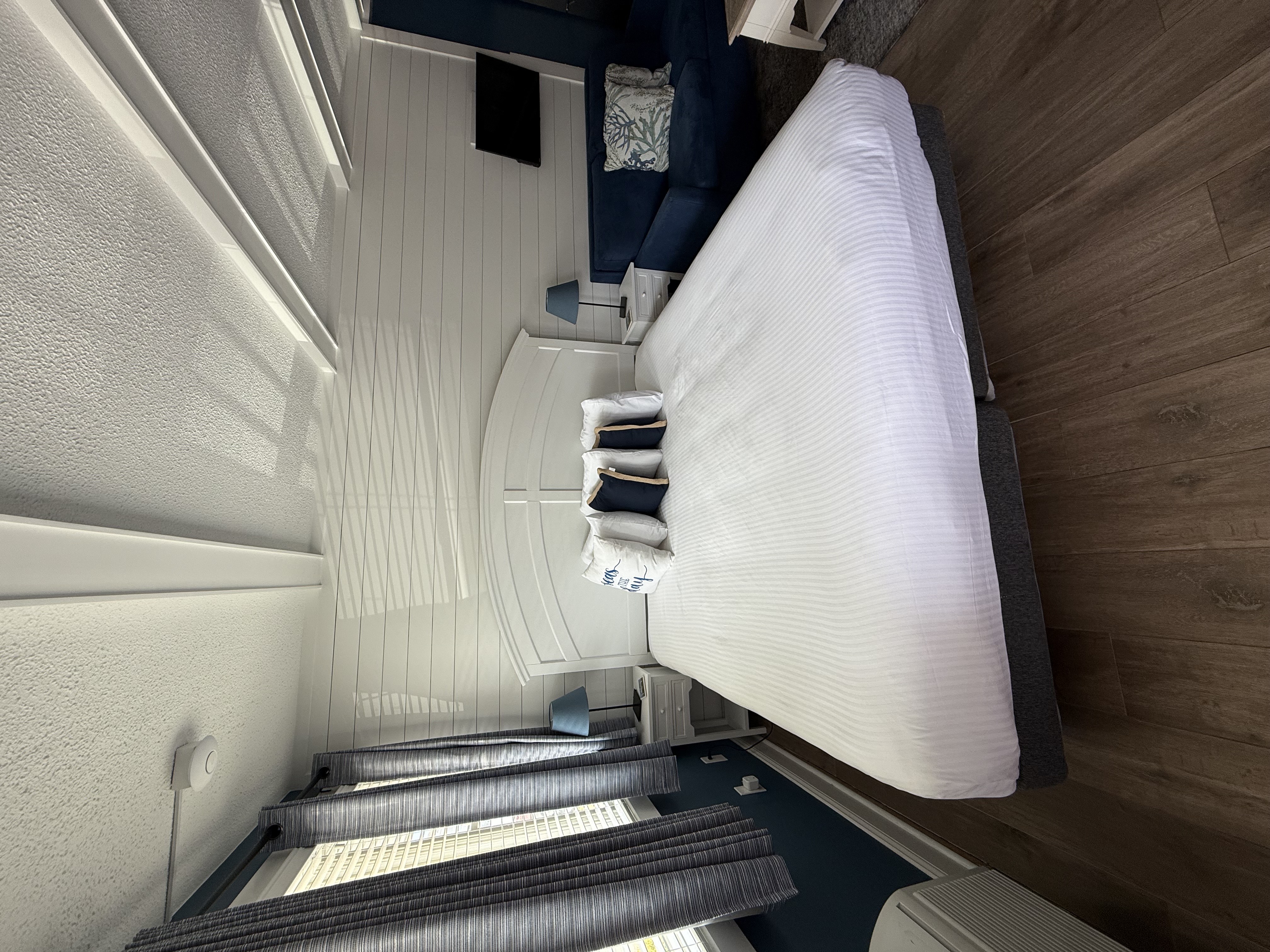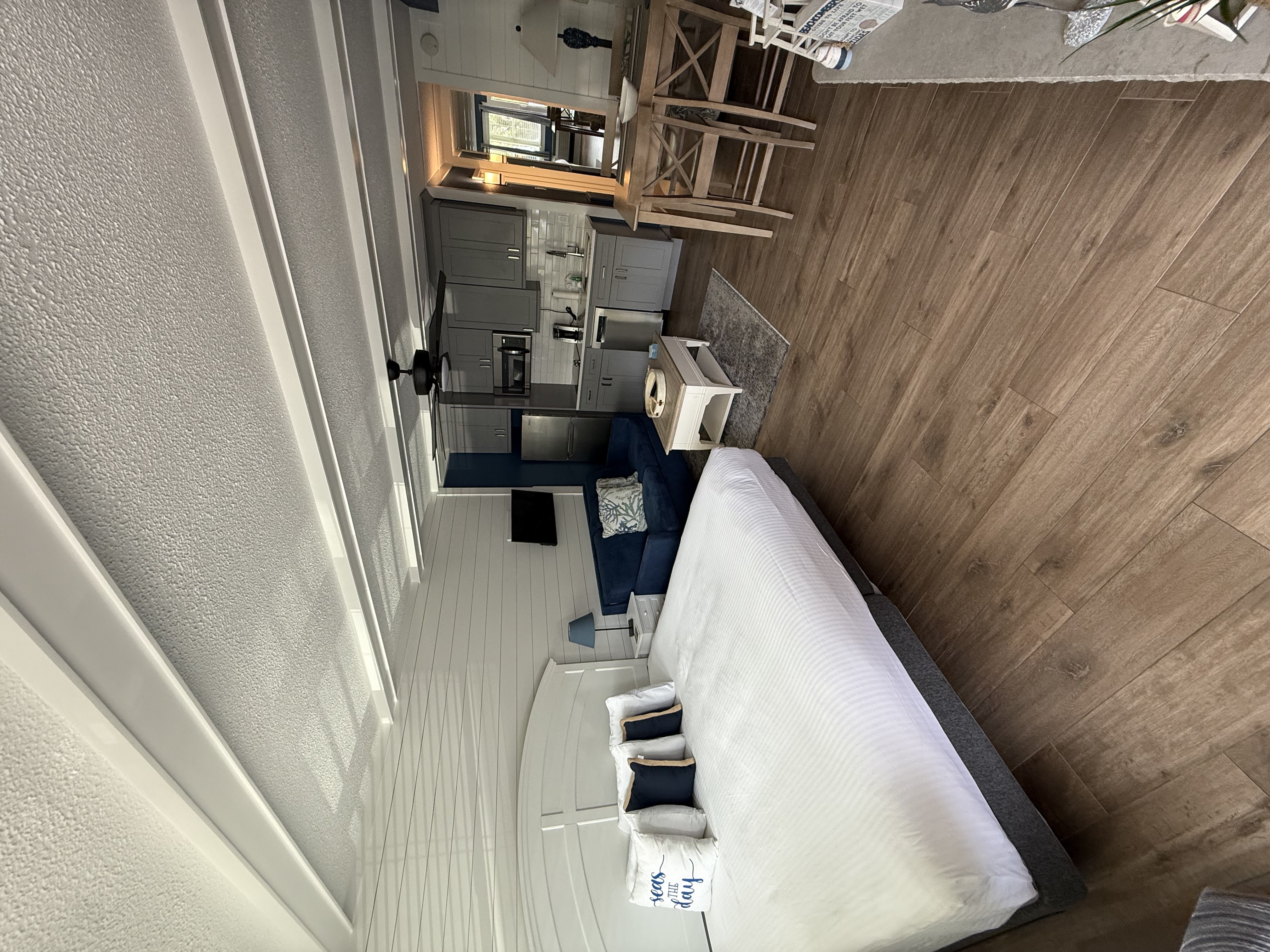 Welcome to our modern, Studio Suites, where comfort meets convenience. Each room is individually designed and perfect for both couples and small families, offering a cozy retreat with modern amenities. The suite features a well-equipped kitchenette, allowing you to prepare light meals and snacks at your leisure. Rest peacefully on the plush queen bed, or make use of the pull-out couch that can accommodate additional guests. With the capacity to sleep up to four people, our Studio Suite is ideal for a relaxing beach getaway.